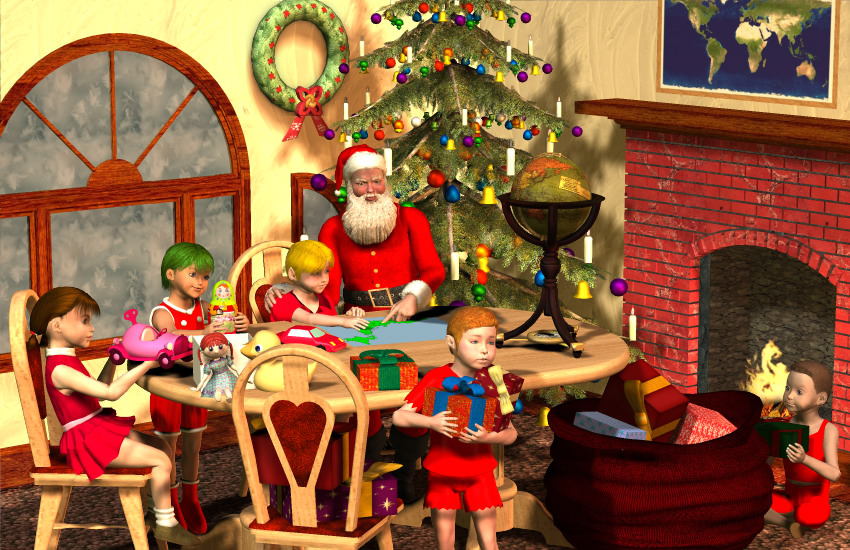 | クレジット | サンタクロース:D3サンタセット(Daz) 妖精たち:PSキャラ(自作)テクスチャ(Miyabouさん、Sarsaさん、Gavさん、Skyさん)髪(Ukonさん、Toshyoさん、Mayaさん、MegaJarさん、Daz) 服(Yagamiさん、Zockさん、 MegaJarさん) 背景、小道具:ツリー(RDNA)部屋、テーブル(Sams3D) あと、Freeの小道具、テクスチャいっぱい |