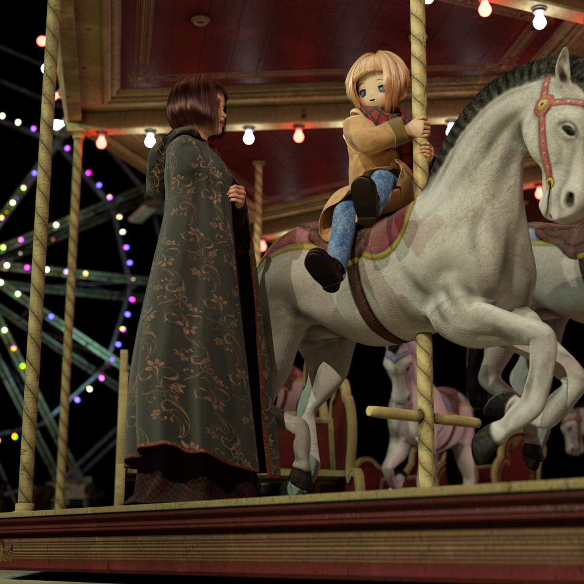 Carnival_Carousel Cotton Candy Ferris Wheel Background People
